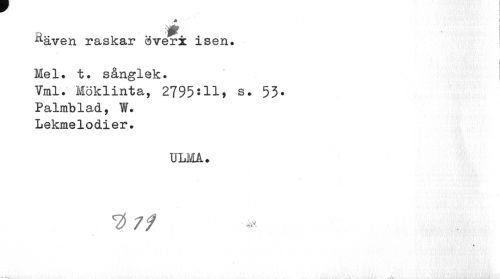 //// * < o * //// Aäven raskar överx isen. //// Mel. t. sånglek. //// Yml. MÖklinta, 2795:11, s. 55. //// Palmblad, W. //// Lekmelodier. //// ULMA. //// 7!>79 //// 9 ////