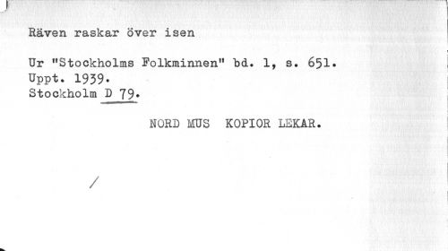 //// Räven raskar över isen //// ¦ //// i //// i //// Ur "Stockholms Folkminnen" "bd. 1, s. 651. I //// Uppt. 1939- i //// Stockholm JDJ9. j //// NORD MS KOPIOR LEKAR. //// I //// ] //// / ////