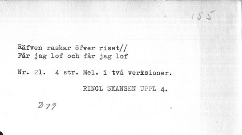 //// ,- . ' ¦')"> 't ** " //// \ i //// Räfven raskar öfver riset// Får jag lof och får jag lof //// Nr. 21. 4 str. Mel. i två verxsioner. //// RINGL SKANSEN UPPL 4. ////