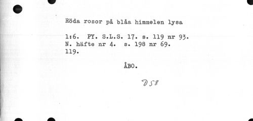 //// m //// Röda rosor på blåa himmelen lysa //// 1:6. PY. S.L.S. 17. s. 119 nr 93. N. häfte nr 4. s. 198 nr 69. 119. //// ÅBO. //// Jff ////