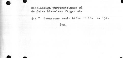 //// Rödflammiga purpurstrimmor gå de östra himmelxen färgar så. //// 4:4 ? Svenssons saml. häfte nr 16. s. 152. //// åbo. //// o ////