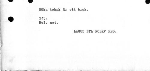 //// Röka tobak är ett bruk» ^^ Mel. not. //// LAGUS NTL FOLKV REG. //// i //// K' . t^tewHf-Vj- ////