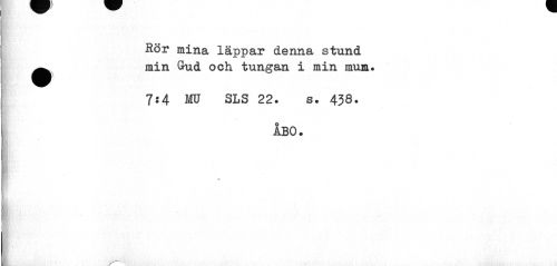 //// Rör mina läppar denna stund ^^ min Gud och tungan i min mun. //// 7:4 MU SLS 22. s. 438. //// åbo. ////