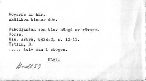 //// I //// I //// Rövarna är här, //// skällkoa hinner döm. i //// f //// Fäbodjäntan som blev hängd av rövare. Forsa. //// Hls. Arbrå, 8424:2, s. 10-11. Östlin, E. //// ... tolv man i skogen. //// i //// ULMA. //// ¦ M 1 ¦ \ i '. //// .A — ___. .v - . . .y** 11 ////