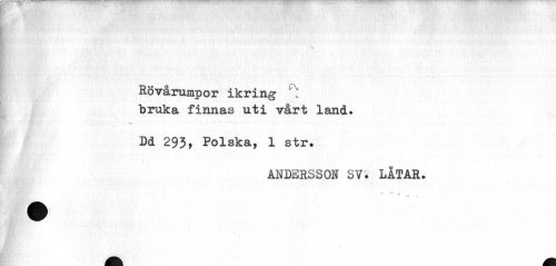 //// v //// Rövårumpor ikring ^ //// bruka finnas uti vårt land. //// ... • //// Dd 293, Polska, 1 str. //// ANDERSSON SV. LÅTAR. ////