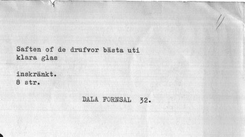 //// T //// Saften of de drufvor bästa uti klara glas //// inskränkt. 8 str. //// DALA FORUSAL 32. //// k ////