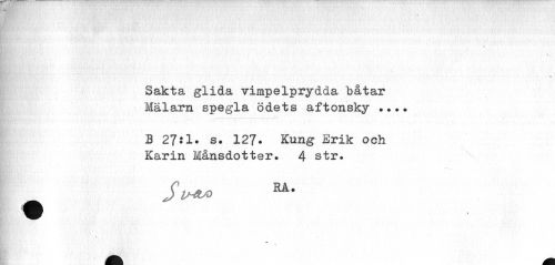 //// I //// Sakta glida vimpelprydda båtar Mälarn spegla ödets aftonsky • ».• //// B Z]il. s. 127. Kung Erik och Karin Månsdotter. 4 str. //// St*» ////