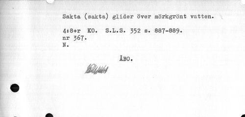//// 0 //// Sakta (sakta) glider över mörkgrönt vatten. //// 4:8+r KO. S.L.S. 352 s. 887-889. nr 367. //// N. //// ÅBO. //// ät0t ////
