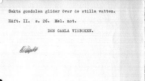 //// Sakta gondolen glider över de stilla vatten. Haft. II. s. 26. Mel. not. //// DEN GAMLA VISBOKEN. //// < //// k. ////