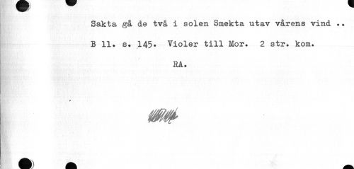 //// Sakta gå de två i solen Smekta utav vårens vind .. B 11. s. 145. Violer till Mor. 2 str. kom. //// HÅ. //// $ //// 00 ////