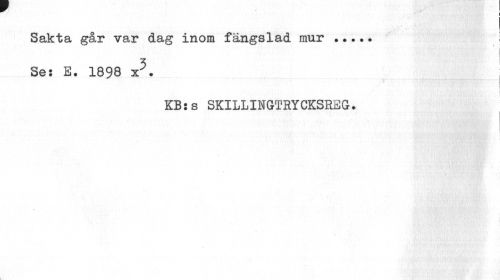 //// Sakta går var dag inom fängslad mur ...i //// Se: E. 1898 x5. //// KB:s SKILLINGTRYCKSREG. ////