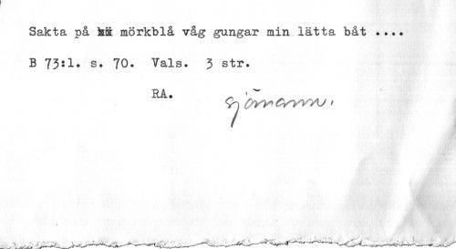 //// Sakta på kä mörkblå våg gungar min lätta båt . ... B 73:1» s. 70- Vals. 3 str. //// RA. ^ ¦ w //// Sn C*YV> Crvi/^AJ f //// 0, ////