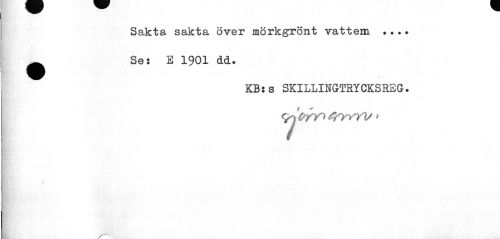 //// Sakta sakta över mörkgrönt vattem ... ^ Se: E 1901 dd. //// KB:s SKILLINGTRYCKSREG. //// £?V> ^yyyV > ////