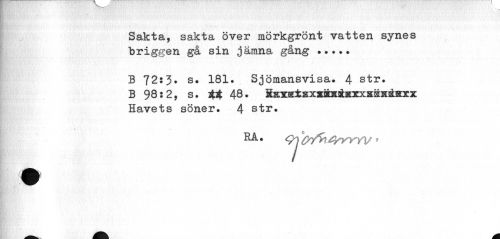 //// .. Il v . > Ä-T • v •"'•x- Vi' • '•<•".' • -a, -a ,'•• ' - \ ••¦¦¦*.- • -'..-.. ¦,¦¦',.':'>. \ •' >/. V. A' i ' . .,'- ' ¦ •' ¦.¦< • ¦'• ' • •" i •• « . •»• '•>-'•• . s >; • -•< •.It. . > • . : v . • ¦fl .t.. .•]«•• //// Sakta, sakta över mörkgrönt vatten synes //// briggen gå sin jämna gång... //// p ¦ • • ¦ ¦ . . , f ¦ ¦ //// B 72:3- s. 181. Sjömansvisa. 4 str. B 98:2, s. tt 48. Ssx&ixxxräixxxx&HäKxx //// * //// Havets söner. 4 str. //// - //// /Éi^ v w ////