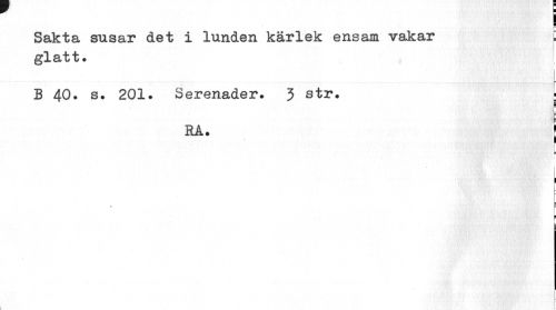 //// I //// Sakta susar det i lunden kärlek ensam vakar glatt. //// B 40. s. 201. Serenader. 3 str. . //// ¦ //// i- //// RA. ! //// ! g ////