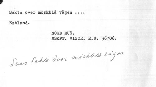 //// Sakta över mörkblå vågen ... Estland. //// NORD MUS. //// MSKPT. VISOR. E.U. 36706. ////