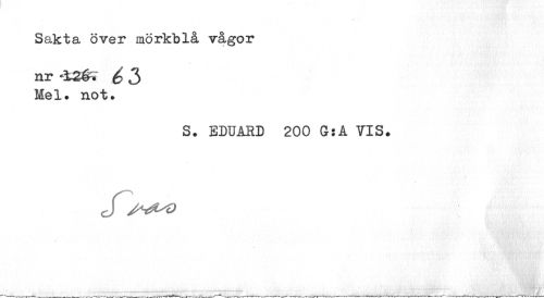 //// Sakta över mörkblå vågor //// nr +12&* é> 3 Mel* not. //// S. EDUARD 200 G;A VIS. //// S ////