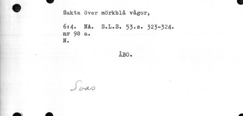 //// ^^ Sakta över mörkblå vågor, //// 6:4. NA» S.L.S. 53.s. 323-324. //// nr 98 a. N. //// ABO. ////