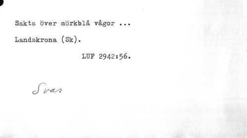//// t //// Sakta över mörkblå vågor ... Landskrona (Sk). //// LUF 2942:56. //// J IStX^D ////