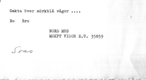 //// Sakta över mörkblå vågor ... Bo Bro //// NORD MUS //// MSKPT VISOR E.U. 35859 ////