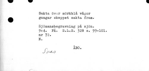 //// Sakta över mörkblå vågor ^^ gungar skeppet sakta fram. //// Sjömansbegravning på sjön. 9:4- PÄ. S.L.S. 328 s. 99-101. nr 72. N. //// ÅBO. //// J IS^LO ////