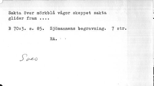 //// Sakta över mörkblå vågor skeppet sakta ¦ //// glider fram ...• > //// i //// B 70:3* s* 85. Sjömannens begravning. 7 str. //// RA. > ' ////