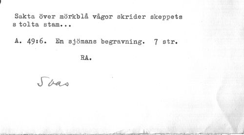 //// Sakta över mörkblå vågor skrider skeppets s tolta stam... //// A. 49:6. En sjömans begravning. 7 str. //// RA. //// v) //// ---v___ ___ - . ... —— .--- __ -- —-_«--- --- ifi---¦- - r---MO*" ---y.,^ - ---'---K" "---' --- ////