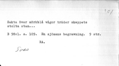 //// 'V //// : //// Sakta över mörkblå vågor träder skeppets stolta stam.•. //// B 98*s# 109» En sjömans begravning. 9 str. //// RA. //// y^o ! ////