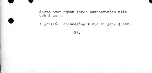 //// Sakta över n^den föres sunnanvinden mild och ljum... //// ^^ A 372:16. Solnedgång ± vid Siljan. 4 str. //// RA. //// « ////