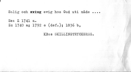 //// Salig och mriag evig hos Gud uti nåde ... Ses Z 1741 a. //// Zz 1740 a; 1792 e (def.)j I836 b, //// KBss SKILLINGTRYCKSREG. ////