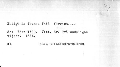 //// u) //// ¦t. •¦* ' ¦ ¦ ^ f //// Saligh är thenne thid förvist... //// Se: Före 1700. Vitt. Sv. Två andelighe vijsor. 1584. //// XS KB:s SKILLINGTRYCKSREG. //// i //// * //// N ////