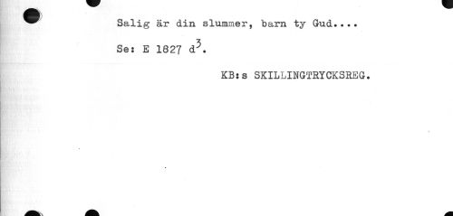 //// B i //// ^^ Salig är din slummer, barn ty Gud... //// Se: E 1827 d5. //// KB:s SKILLINGTRYCKSREG. //// » //// k ////