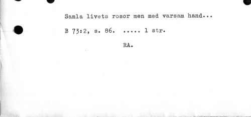 //// Samla livets rosor men med varsam hand».. //// ^ B 73:2, s. 86...1 str. //// RÅ. //// IftÉte ////