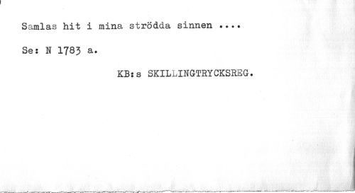 //// Samlas hit i mina strödda sinnen ... Ses N 1783 a. //// KBss SKILLINGTRYCKSREG. ////