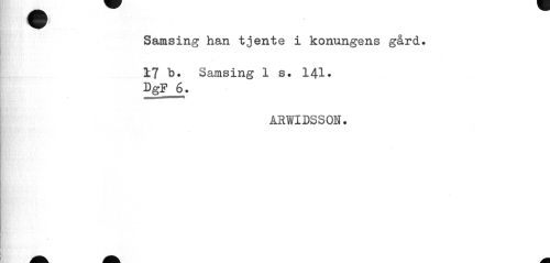 //// Samsing han tjente i konungens gård. //// 17 b. Samsing 1 s. 141. PgF 6. //// ARWIDSSON. ////