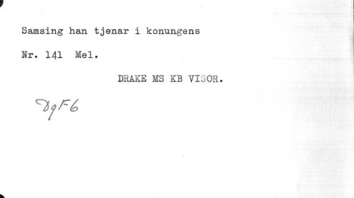 //// 1 //// Samsing han tjenar i konungens //// Nr. 141 Mel. //// DRAKE MS KB VISOR. //// k ////