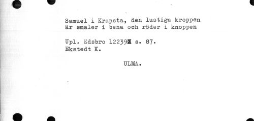 //// v //// Samuel i Krapsta, den lustiga kroppen är småler i bena och röder i knoppen //// Upl. Edsbro 12239® s. 87. Ekstedt K. //// ULMA.. //// t ////