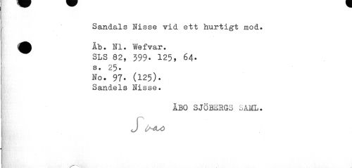 //// Sandals Nisse vid ett hurtigt mod. A Äb. NI. Wefvar. //// SLS 82, 399. 125, 64. //// s. 25. //// No. 97* (125). //// Sandels Nisse. //// ABO SJÖBERGS SAML. //// J O^o ////