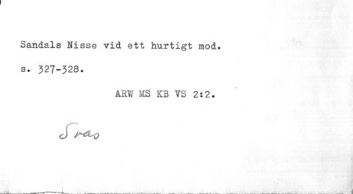 //// Sandals Nisse vid ett hurtigt mod. s. 327-328. //// ARW MS KB VS 2:2. //// J AtJLtf ////