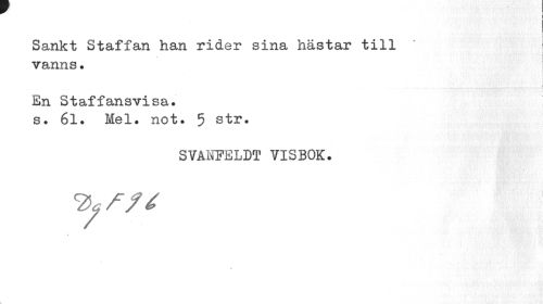 //// Sankt Staffan han rider sina hästar till vanns. //// En Staffansvisa. //// s. 61. Mel. not. 5 s"tr. //// SVÅNFELDT VISBOK. ////