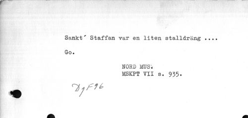 //// ¦ //// Sankt' Staffan var en liten stalldräng ... Go. //// NORD MUSi MSKPT VII s. 955. ////