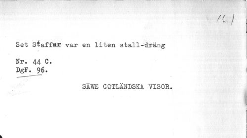//// Set Staffan //// var en liten stall-dräng //// B //// Nr. 44 C. //// DgF. 96. I //// SAWE GOTLÄNDSKA VISOR. //// j ////