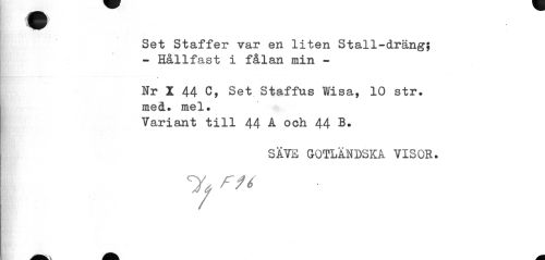 //// ¦ //// Set Staffer var en liten Stall-dräng; - Hållfast i fålan min - //// Nr I 44 C, Set Staffus Wisa, 10 str. med. mel. //// Variant till 44 A och 44 B. //// SÄ VE GOTLÄNDSKA VISOR. ////