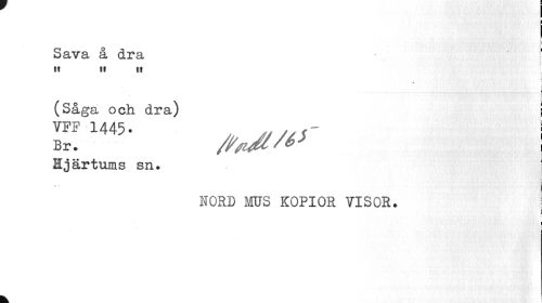 //// p //// Sava å dra ' //// n ii 11 //// i //// (Såga och dra) i //// YFF 1445. , I //// Br. flft/t'*' //// Hjärtums sn. //// i 1 //// NORD MUS KOPIOR VISOR. I //// i ////