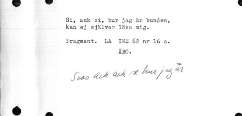 //// Si, ack si, hur jag är "bunden, kan ej själver lösa mig. //// Fragment. LA INE 62 nr 16 a. //// ÅBO. ////