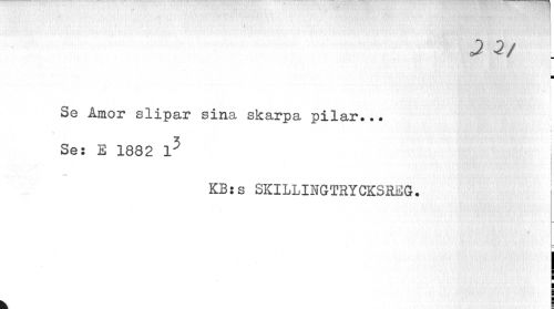 //// D 3/ //// r ¦ //// i //// - //// I //// 3e Åmor slipar sina skarpa pilar... //// Se: E 1882 l5 //// KB: s SKILLINGTRYCKSREG. k i ////