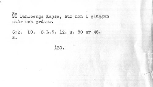 //// Se //// Si Dahlbergs Kajsa, hur hon i gluggen står och gråter. //// 6:2. LO. S.L.S. 12. s. 80 nr 48. H. //// ÅBO. //// V' j //// ^imm //// M ¦ ////
