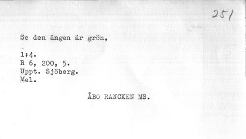 //// 3 r / //// "Z' W' ' w //// Se den ängen är grön, ! //// i //// rf» V //// 1:4» //// R 6, 200, 5. Uppt. Sjöberg. //// Mel. //// ÅBO RANCKEN MS. ////