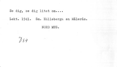 //// Se dig, se dig litet om...» //// Lekt. 1941* Sm. Hälleberga sn Målerås. //// $ //// NORD MUS. ////