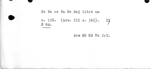 //// Se Du se Du Se dej litet om //// W s. 126. (Arw. III s. 365). Il //// D 84. ' //// Arw MS KB Vs 2:2. ////